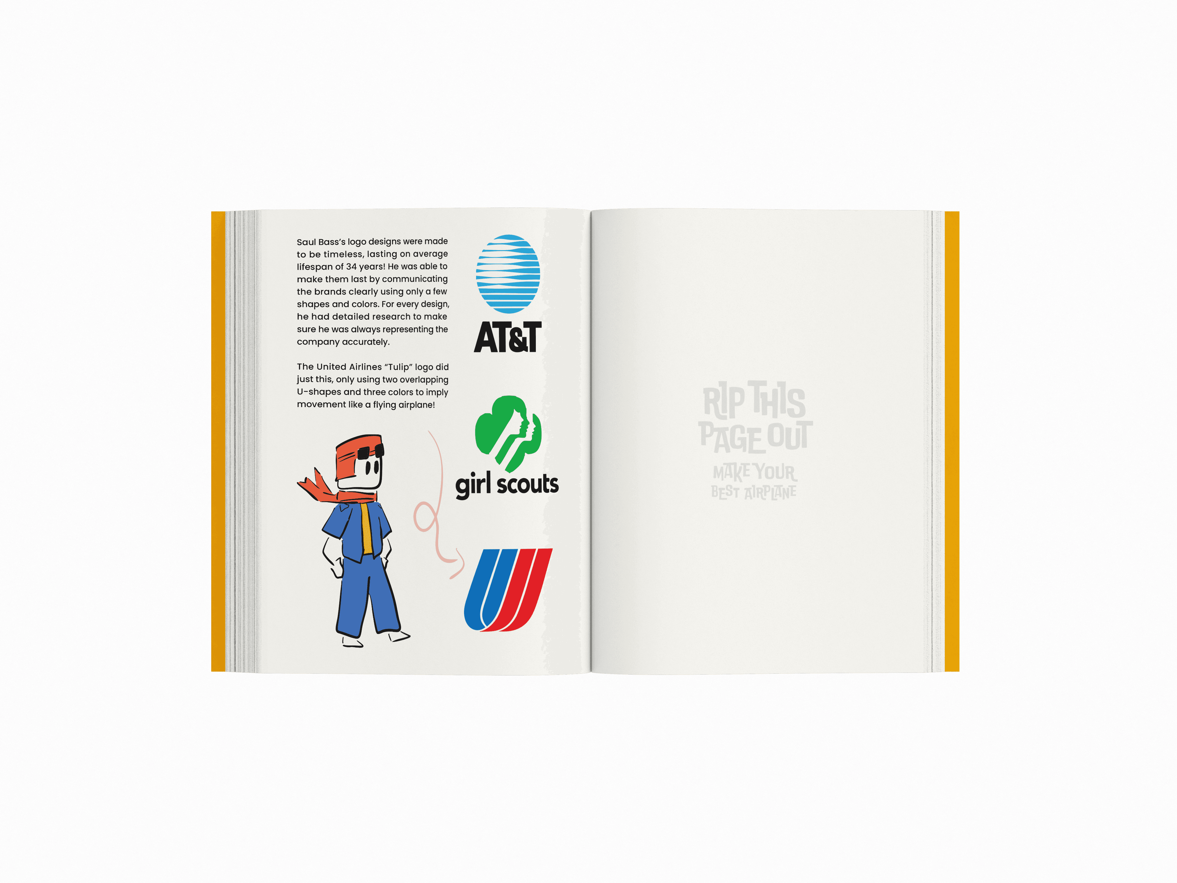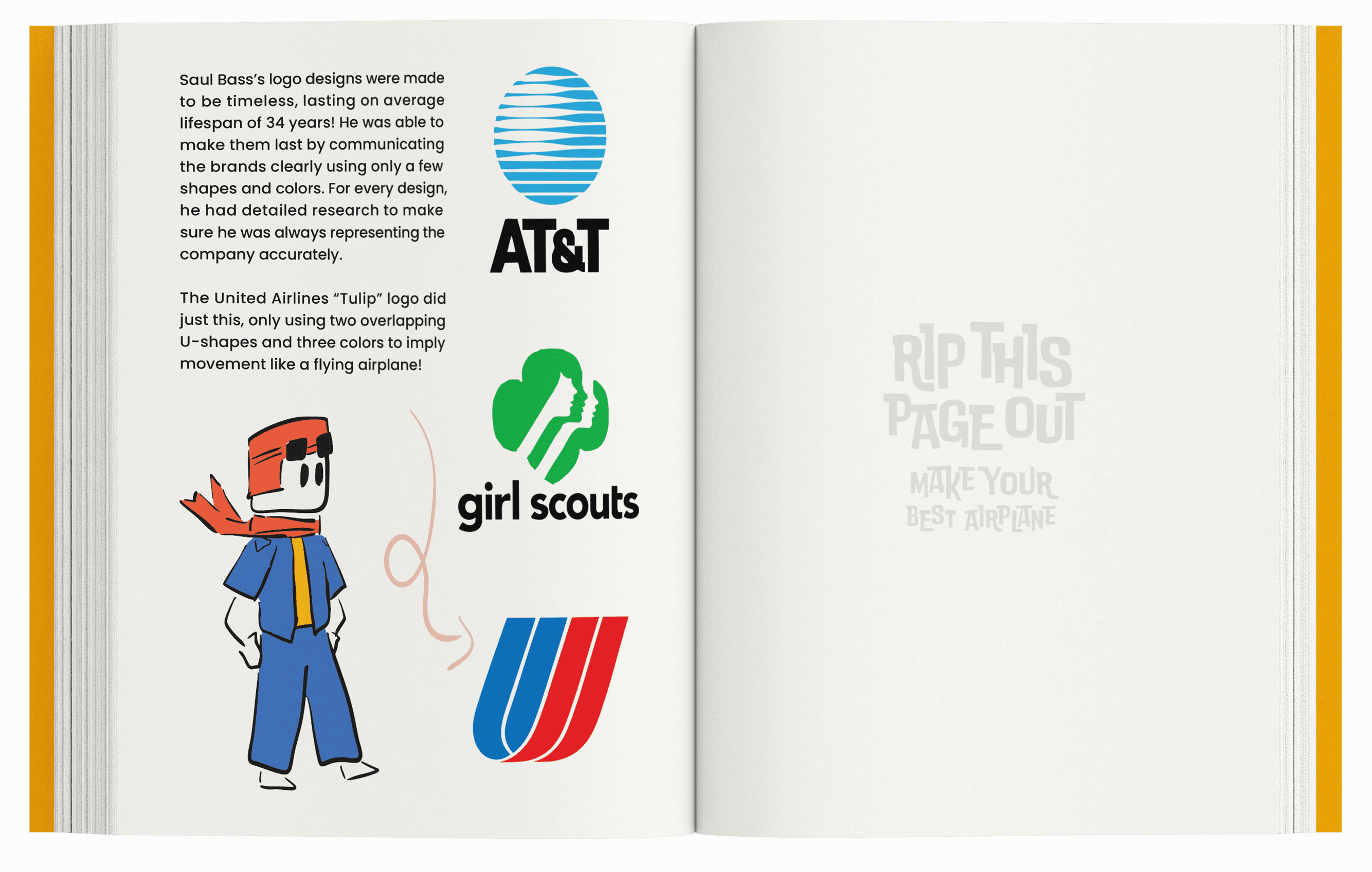 On this page, kids are introduced to several logos designed by Saul Bass that were also discussed in the video, helping them connect the lesson to real-world examples.