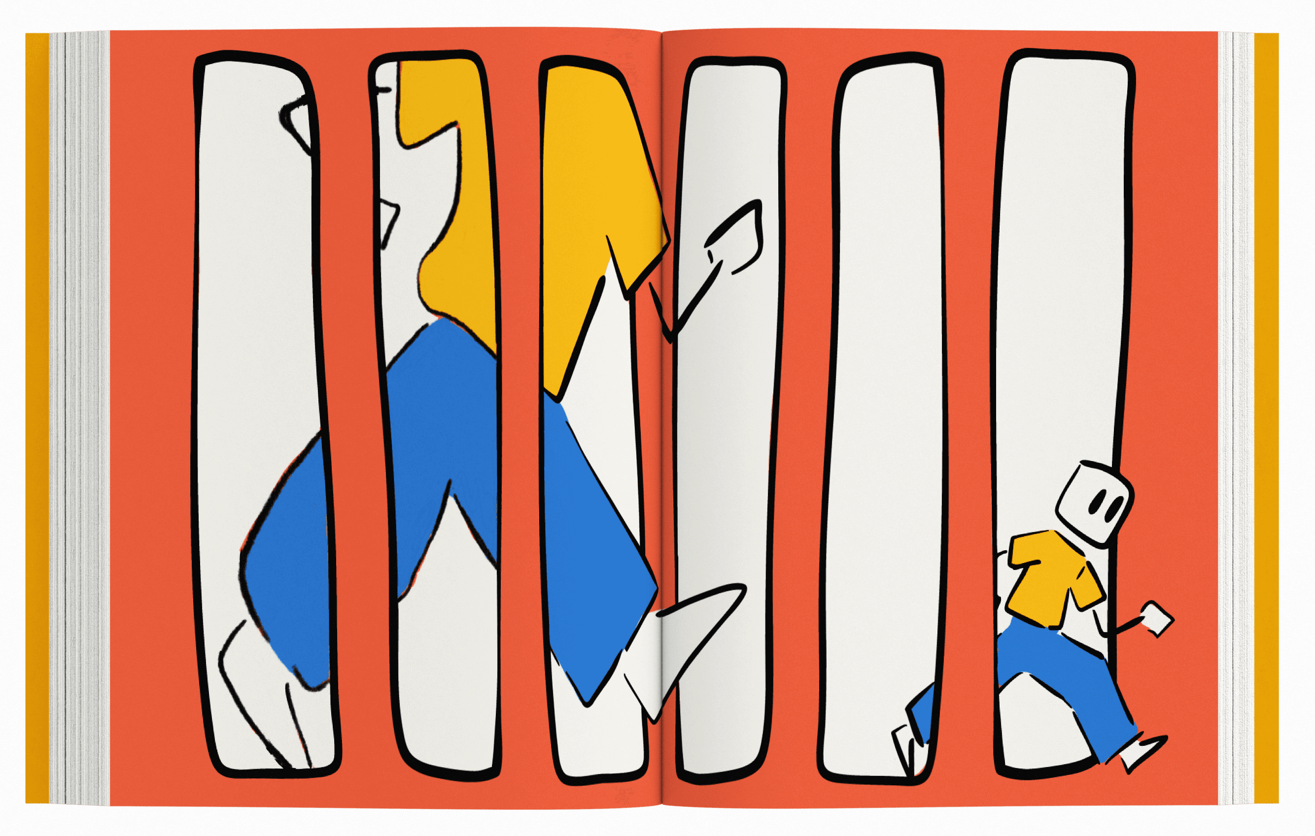 The illustrations show Murphy transitioning into the Mid-Century Modern era, as his body takes on a more geometric, simplified form.